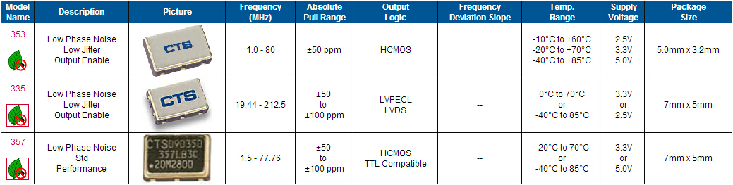 CTS有源晶振,353石英晶振,5032mm壓控晶體振蕩器,VCXO是指這款晶體產品控制功能只有單壓控也就是電壓控制功能,產品本身頻率精度可以隨著電壓搞定起伏來自動調整頻率,使產品永遠控制在一定的頻率范圍,壓控晶振(VCXO)壓控石英晶體振蕩器基本解決方案,PECL輸出,輸出頻率60 MHz到200 MHz之間,出色的低相位噪聲和抖動,三態(tài)功能,應用:SDH/ SONET,以太網,基站,筆記本晶振應用, VCXO,壓控晶體應用:調制解調器,ADSL網絡控制器,無線基站,程控交換設備智能手機,筆記本晶振等符合RoHS/無鉛.