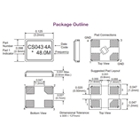 CS-043-048.0M ,3225mm貼片晶振,6G路由器晶振尺寸圖