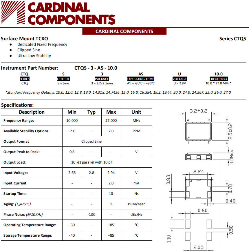 Cardinal晶振,CTQS晶振,溫度補(bǔ)償晶振.貼片式石英晶體振蕩器,低電壓?jiǎn)?dòng)功率,并且有多種電壓供選擇,比如有1.8V,2.5V,3.3V,3.8V,5V等,產(chǎn)品被廣泛應(yīng)用于,平板筆記本,GPS系統(tǒng),光纖通道,千兆以太網(wǎng),串行ATA,串行連接SCSI,PCI-Express的SDH/SONET發(fā)射基站等領(lǐng)域.符合RoHS/無(wú)鉛.