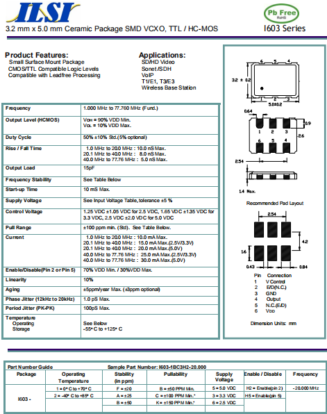 ILSI晶振,I603晶振,VCXO晶振.有源晶振,是只晶體本身起振需要外部電壓供應,起振后可直接驅動CMOS 集成電路,產品本身已實現(xiàn)與薄型IC(TSSOP封裝,TVSOP封裝)同樣的1mm厚度,斷開時的消費電流是15 µA以下,編帶包裝方式可對應自動搭載及IR回流焊接(無鉛對應)產品有幾種電壓供選1.8V,2.5V,3V3.3V,5V,以應對不同IC產品需要.