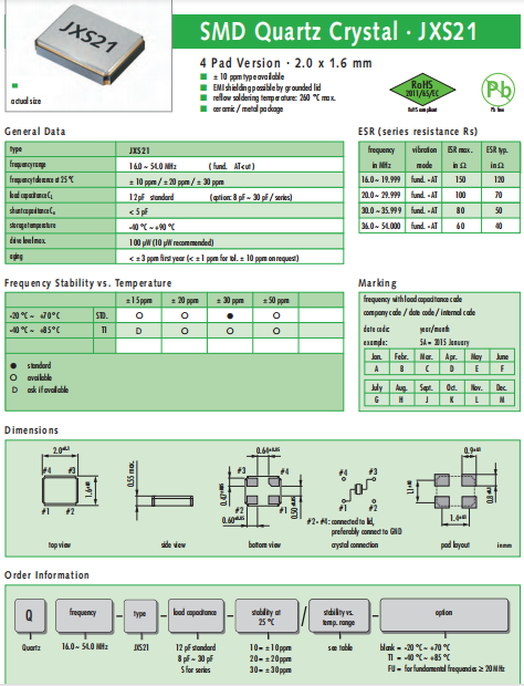 JAUCH晶振,JXS21晶振,無(wú)源石英晶體.普通貼片石英晶振外觀使用金屬材料封裝的,具有高穩(wěn)定性,高可靠性的石英晶體諧振器,晶振外觀本身使用金屬封裝,充分的密封性能,可確保其高可靠性,采用編帶包裝,外包裝采用朔膠盤,可在自動(dòng)貼片機(jī)上對(duì)應(yīng)自動(dòng)貼裝等優(yōu)勢(shì).