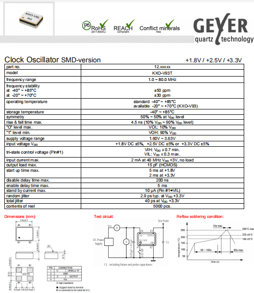 Geyer晶振,KXO-V93T晶振,高質量晶體振蕩器.普通貼片石英晶振外觀使用金屬材料封裝的,具有高穩定性,高可靠性的石英晶體振蕩器,晶振外觀本身使用金屬封裝,充分的密封性能,可確保其高可靠性,采用編帶包裝,外包裝采用朔膠盤,可在自動貼片機上對應自動貼裝等優勢
