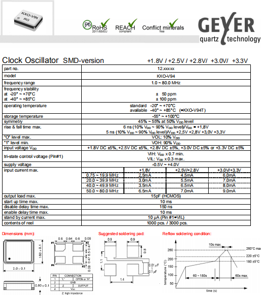 Geyer晶振,KXO-V94晶振,普通有源晶體振蕩器.貼片式石英晶體振蕩器,低電壓?jiǎn)?dòng)功率,并且有多種電壓供選擇,比如有1.8V,2.5V,3.3V,3.8V,5V等,產(chǎn)品被廣泛應(yīng)用于,平板筆記本,GPS系統(tǒng),光纖通道,千兆以太網(wǎng),串行ATA,串行連接SCSI,PCI-Express的SDH / SONET發(fā)射基站等領(lǐng)域.符合RoHS/無鉛.