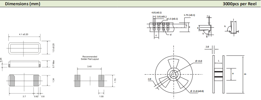 | 激勵功率 | DL | 1.0μW Max. | 推薦:100μW ~ 300μW |