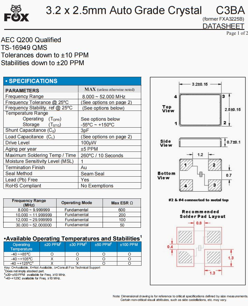 | FC3BQBBMM25.0-T3 | Fox晶振 | FC3BQ | 25 MHz | ±50ppm | ±50ppm |