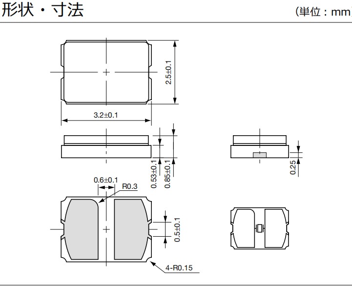 CX3225GA27000D0PTVCC-水晶振動(dòng)子-高速車載網(wǎng)絡(luò)-27MHZ-Kyocera 尺寸圖