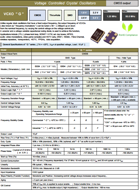 MERCURY晶振,瑪居禮壓控晶振,G576振蕩器.VCXO是指這款晶體產(chǎn)品控制功能只有單壓控也就是電壓控制功能,產(chǎn)品本身頻率精度可以隨著電壓搞定起伏來(lái)自動(dòng)調(diào)整頻率,使產(chǎn)品永遠(yuǎn)控制在一定的頻率范圍,壓控晶振(VCXO)壓控石英晶體振蕩器基本解決方案,PECL輸出,輸出頻率60 MHz到200 MHz之間,出色的低相位噪聲和抖動(dòng),三態(tài)功能,應(yīng)用:SDH/ SONET,以太網(wǎng),基站,筆記本晶振應(yīng)用, VCXO,壓控晶體應(yīng)用:調(diào)制解調(diào)器,ADSL網(wǎng)絡(luò)控制器,無(wú)線(xiàn)基站,程控交換設(shè)備智能手機(jī),筆記本晶振等.