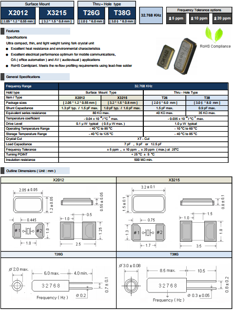 | 頻率公差 | f_— l | ±5ppm,±10ppm,±20ppm |