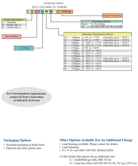 | 儲存溫度 | -55℃~+185℃ | 裸存 |