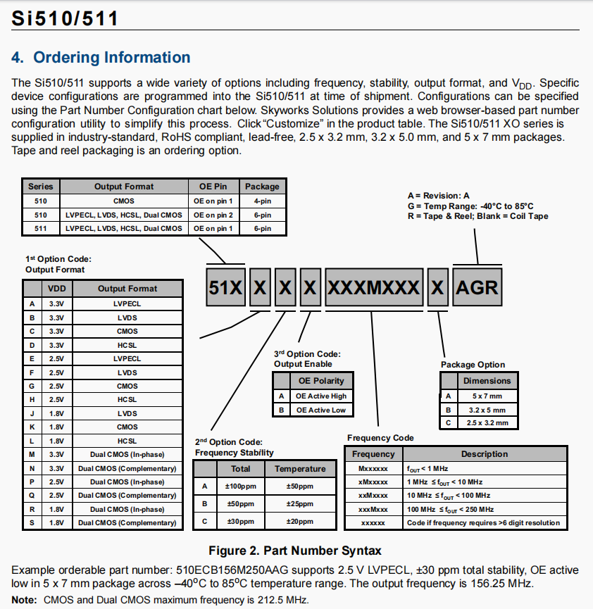 | 510KCA125M000BAG | Skyworks晶振 | Si510 | XO | 125 MHz | CMOS | 1.8V | ±20ppm |