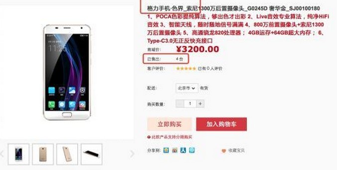 “色界”采用5.5英寸1080p屏幕,搭載驍龍820處理器,內置4GB內存+64GB機身存儲(UFS 2.0),配備前置800萬像素+索尼1300萬像素后置鏡頭,支持前置指紋識別,內置3000mAh電池容量,支持快充3.0,支持Type-C正反插接口,支持Hi-Fi音效,支持雙卡雙待全網通,運行Android 6.0.1系統。 根據這些參數來看并沒有什么很大的特別之處,那么“色界”這款手機的銷售情況到底如何呢?