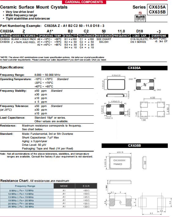 更多>>卡迪納爾貼片晶體CX635A-A5B2C3-40-27.0D13廣泛用于微處理器