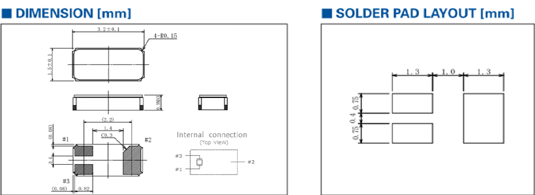 | 頻率溫度特征 | f_tem | ±30 × 10-6/-20°C ~ +70°C | 超出標準的規(guī)格請聯(lián)系我們. |