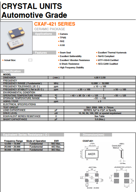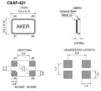 AKER晶振,CXA-028224-4X6D00晶振,CXAF-421晶體,安碁科技亦不斷提升技術服務.透過與客戶緊密的互動,了解客戶需求,提供客戶全方位的技術支援─TotalSolution;貫徹安碁誠信為首、專業化客戶服務及品質優先的理念.公司愿景-追求卓越,不斷創新,與客戶一同成長,成為客戶在頻率控制元件領域的最佳伙伴.主要從事晶振元件產品的研發、制造及銷售.擁有深厚的研發技術底蘊,為晶體振蕩器之專業制造公司.