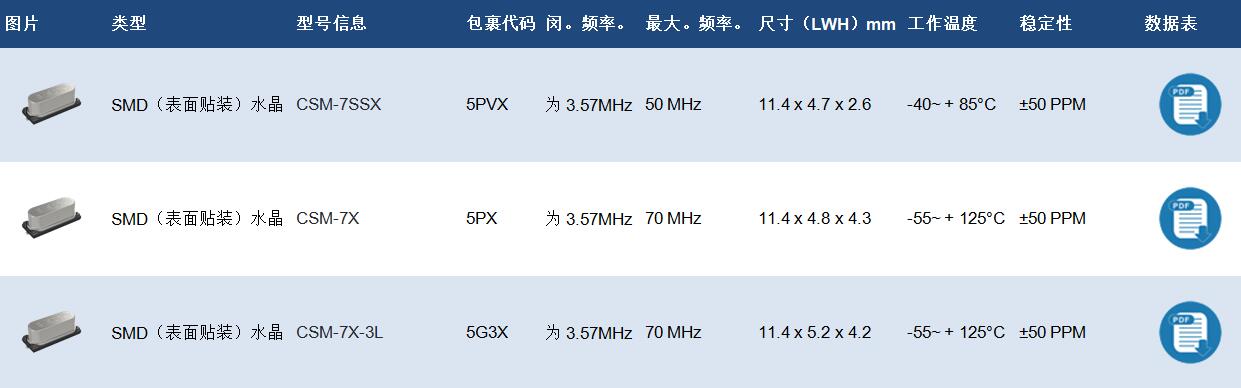 | 原廠編碼 | 型號 | 頻率 | 尺寸 |